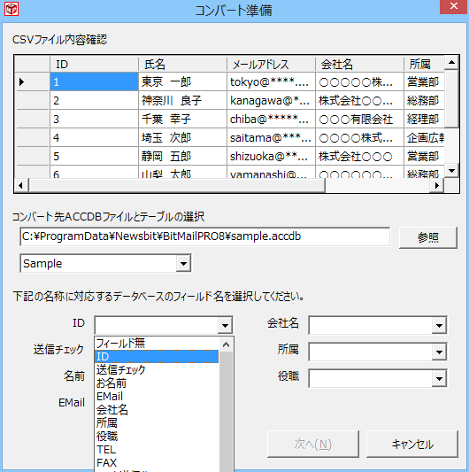 ※バージョン9(BitMailPRO9)から機能廃止となりました。 ■CSV形式のデータをACCESSファイルへのコンバート