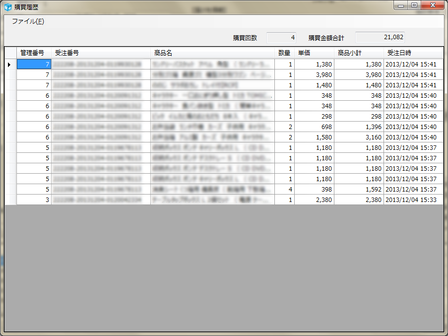 [購買履歴]ボタンを押すと購買履歴の画面が表示されます。